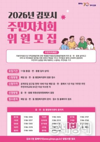이번 모집은 주민자치회의 자율적 기반을 강화하고 자치역량을 높이기 위해 개정된 '김포시 주민자치회 및 주민자치센터 설치·운영에 관한 조례'에 근거해 추진된다. 김포시는 이번 조례 개정을 통해 주민자치회의 자율성과 전문성 강화를 통한 실질적 주민자치 실현의 기반을 마련했다.