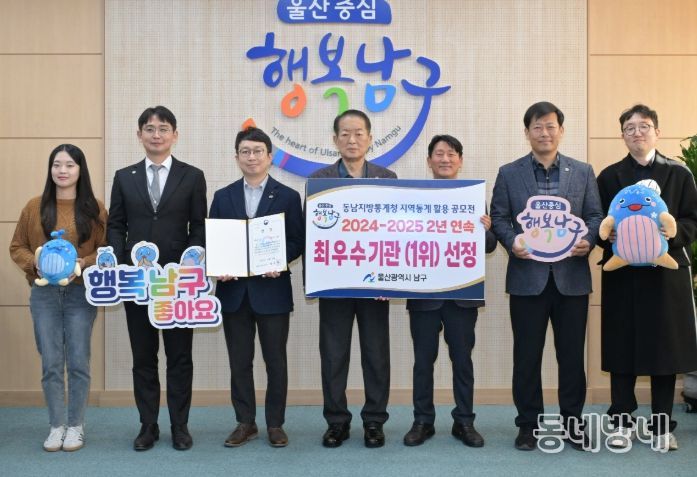 동네방네 김형규 기자 | 울산 남구는 동남지방통계청이 주최한 ‘2025년 동남청 지역통계 우수사례 공모전’에서 최우수기관(1위)으로 선정됐다고 19일 밝혔다.