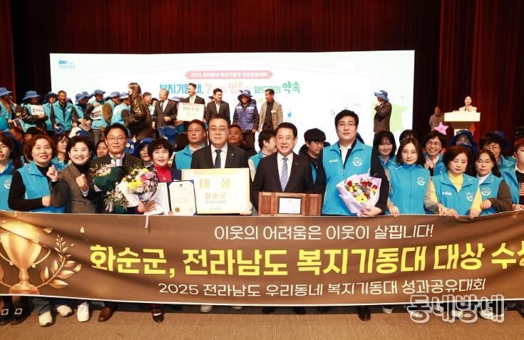 동네방네 김형규 기자 | 화순군은 전라남도 주관 ‘2025년 우리동네 복지기동대 운영 성과평가’에서 대상 수상의 쾌거를 이루었다고 19일 밝혔다.