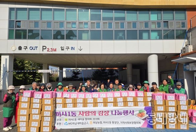 동네방네 김형규 기자 | 하남시 미사1동 새마을협의회(회장 김성호)와 부녀회(회장 유정자)는 2025년 11월 19일, 본격적인 겨울을 맞아 관내 소외계층 100가구에 전달할 ‘사랑의 김장김치 나눔 행사’를 성황리에 진행했다.