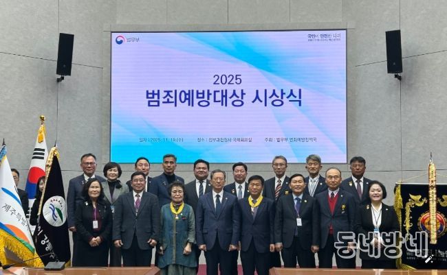 동네방네 김형규 기자 | 제주특별자치도가 도민 참여형 범죄예방 정책의 우수성을 인정받아 법무부 주관 ‘2025 범죄예방대상’ 국무총리 표창을 19일 받았다.
