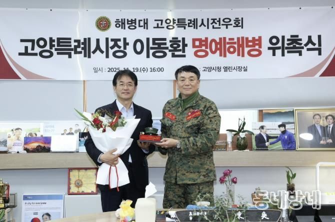 동네방네 김형규 기자 | 고양특례시는 지난 19일, 열린시장실에서 해병대 고양특례시 전우회 주관‘이동환 고양특례시장 명예해병 위촉식’을 개최했다고 밝혔다.