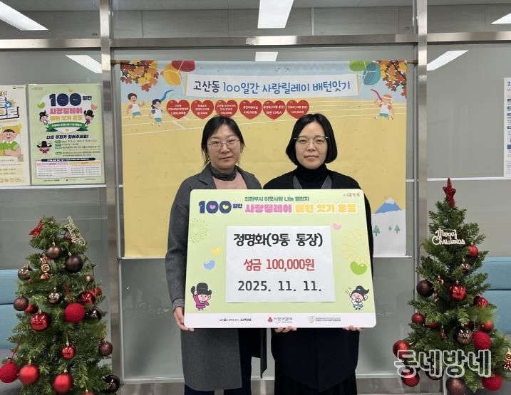 동네방네 김형규 기자 | 의정부시 고산동주민센터는 고산동 통장협의회가 ‘100일간 사랑릴레이 배턴 잇기’에 참여해 이웃사랑 실천에 동참했다고 20일 밝혔다.