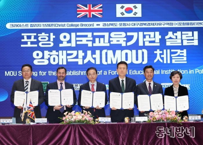 경상북도와 포항시는 20일 포항시청 대회의실에서 영국 왕립 명문학교인 ‘크라이스트 칼리지 브레콘(Christ College Brecon, 이하 CCB)’과 국제학교 설립을 위한 MOU를 체결했다.