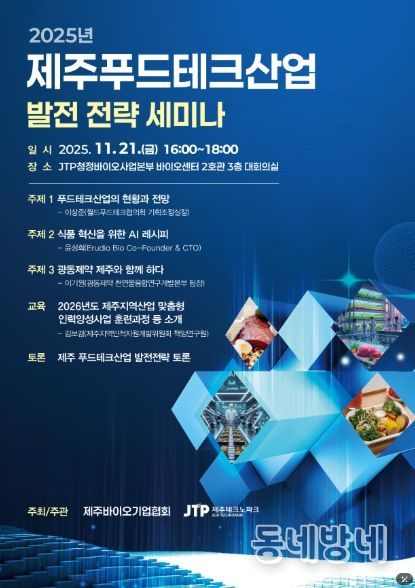 동네방네 김형규 기자 | 제주에서 푸드테크 산업에 대한 발전 전략과 과제를 모색하는 세미나가 열린다.
