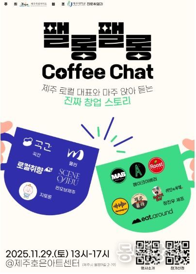제주도는 29일 오후 1시 제주호은아트센터에서 제주 로컬 창업자·운영자들과 ‘팰롱팰롱 커피챗’을 연다.