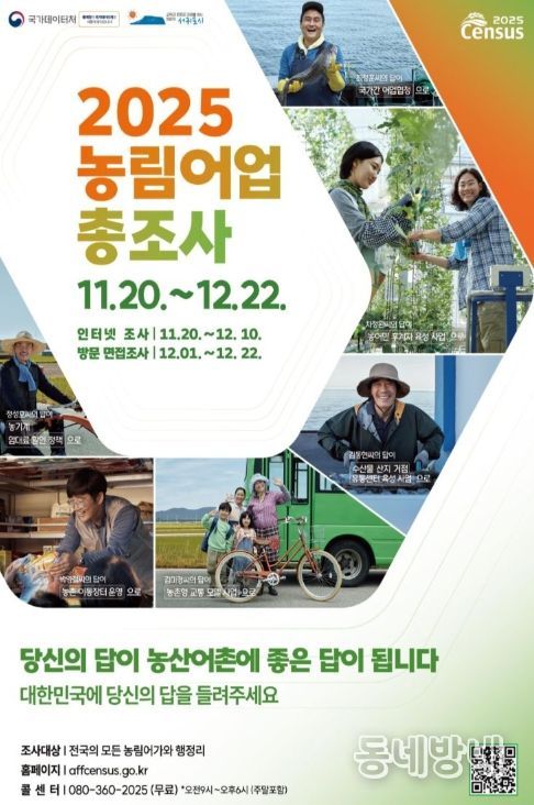 동네방네 김형규 기자 | 서귀포시는 11월 20일부터 12월 22일까지 2025 농림어업총조사를 실시한다고 밝혔다.