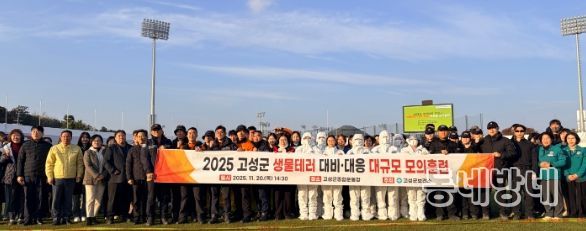동네방네 김형규 기자 | 고성군은 군민의 생명과 안전을 지키기 위해 2025년 11월 20일 고성군종합운동장에서 ‘2025년 생물테러 대응 대규모 모의훈련’을 성공적으로 실시했다고 밝혔다.