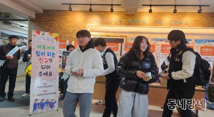동네방네 김형규 기자 | 경상북도교육청 의성교육지원청은 2025년 11월 21일 오전, 의성유니텍고등학교에서 학생들의 학교폭력에 대한 경각심을 키우고 자발적인 학교폭력 예방 의지를 강화하기 위한 학교폭력예방 캠페인을 실시했다.