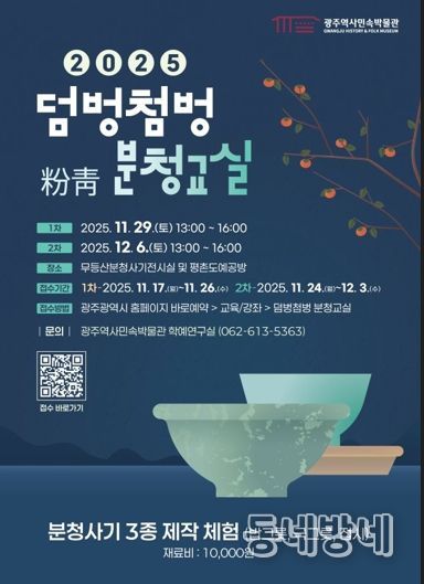 동네방네 김형규 기자 | 광주광역시 역사민속박물관은 ‘2025 덤벙첨벙 분청교실’을 11월29일과 12월6일 두 차례 운영한다.