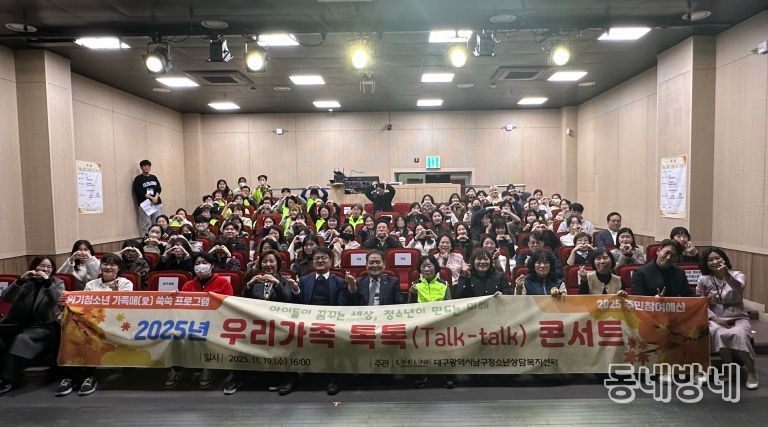 동네방네 김형규 기자 | 대구 남구는 지난 19일, 남구청소년상담복지센터(센터장 김지은)와 함께 남구청소년창작센터 창공홀에서 제2차 청소년 가족 콘서트 ‘우리가족 톡톡(Talk-talk) 콘서트’를 개최했다.