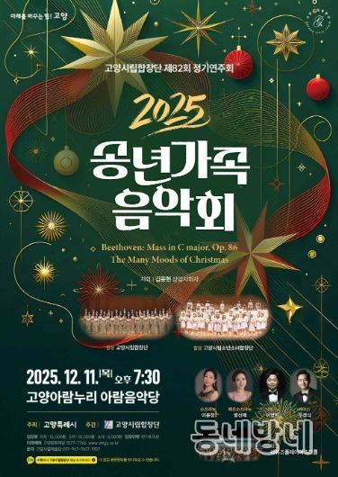동네방네 김형규 기자 | 고양특례시를 대표하는 문화사절단인 고양시립합창단이 오는 12월 11일 저녁 7시 30분, 고양아람누리 아람음악당에서 제82회 정기연주회‘2025 송년 가족 음악회’를 개최한다.