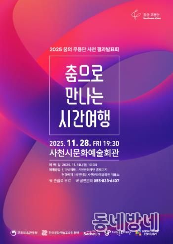 동네방네 김형규 기자 | 사천문화재단은 오는 11월 28일 오후 7시 30분, 사천시문화예술회관 대공연장에서 ‘2025 꿈의 무용단 사천’ 결과발표회 '춤으로 만나는 시간여행'을 개최한다.