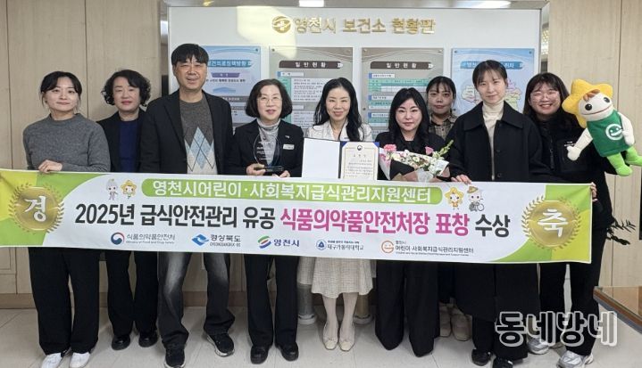 동네방네 김형규 기자 | 영천시어린이·사회복지급식관리지원센터는 지난 17일 ‘어린이·사회복지 급식안전관리 유공’ 식품의약품안전처 우수상 표창을 수상했다.