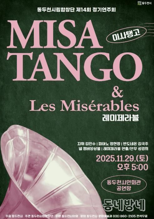 동네방네 김형규 기자 | 동두천시는 오는 11월 29일 오후 5시 시민회관 공연장에서 제14회 동두천시립합창단 정기공연을 개최한다고 밝혔다.