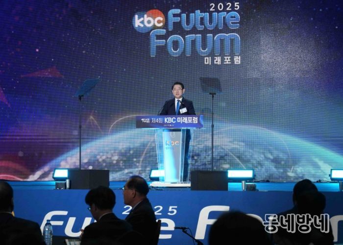 동네방네 김형규 기자 | 김영록 전라남도지사가 26일 여수 소노캄호텔에서 열린 KBC미래포럼에 서 전남의 산업대전환 전략을 제시했다.