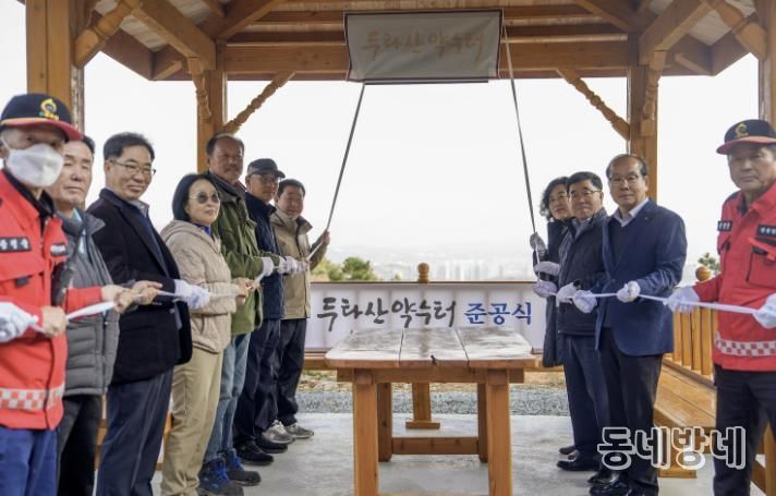 동네방네 김형규 기자 | 충북 증평군은 지난 26일 증평읍 송산리 두타산 자락에 주민과 등산객들이 편안하게 이용할 수 있는 약수터 조성 완료를 기념하는 현판식을 개최했다.