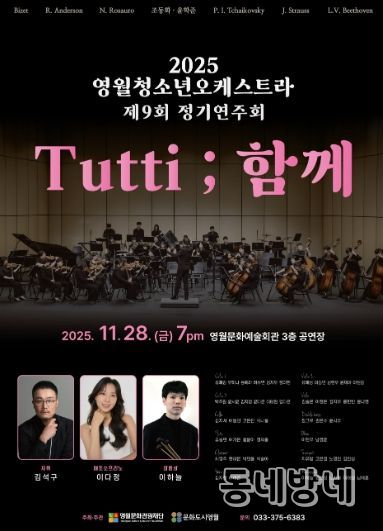 동네방네 김형규 기자 | (재)영월문화관광재단은 오는 11월 28일 오후 7시, 영월문화예술회관 3층에서 ‘2025 영월청소년오케스트라 제9회 정기연주회 'Tutti : 함께'’를 개최한다고 밝혔다.