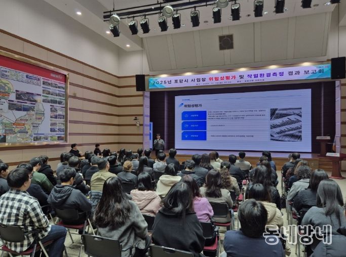 동네방네 김형규 기자 | 포항시는 28일 시청 대회의실에서 시 직영 사업장의 관리감독자와 사업 담당자 등 100여 명이 모인 가운데 ‘2025년 포항시 사업장 위험성평가 컨설팅 및 작업환경측정 용역 결과 보고회’를 개최했다.