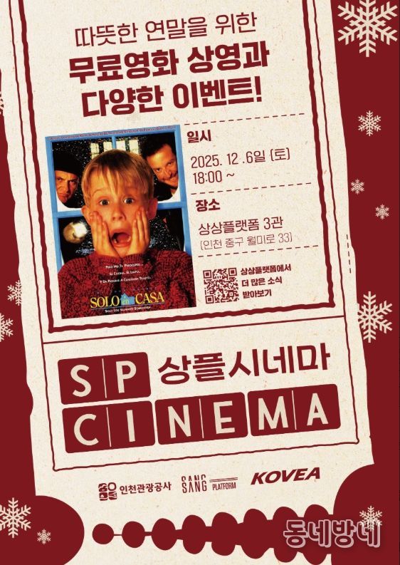 동네방네 김형규 기자 | 인천관광공사는 오는 6일 상상플랫폼 3관에서 무료 영화 상영 프로그램인‘2025 상플시네마 5회차’를 개최한다고 밝혔다. 이번 상영작은 사전 온라인 투표를 통해 시민들이 직접 선정한 영화로, 높은 관심과 호응이 기대된다.