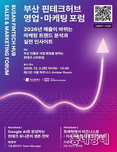 또한, 온라인 채널 및 협력 네트워크를 활용해 기업 참여를 지속 확대하고 ‘부산 핀테크허브’ 성과 홍보를 강화해 핀테크 기반 성장 산업의 거점을 부산으로 확장한다는 전략이다.