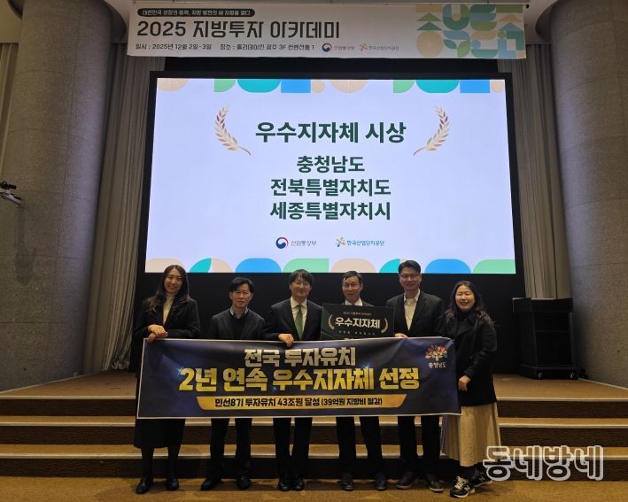 동네방네 김형규 기자 | 충남도는 산업통상자원부 주관 ‘2025년 지방투자촉진사업 지자체 평가’에서 세종시, 전북과 함께 ‘우수’ 지자체로 선정됐다고 2일 밝혔다.