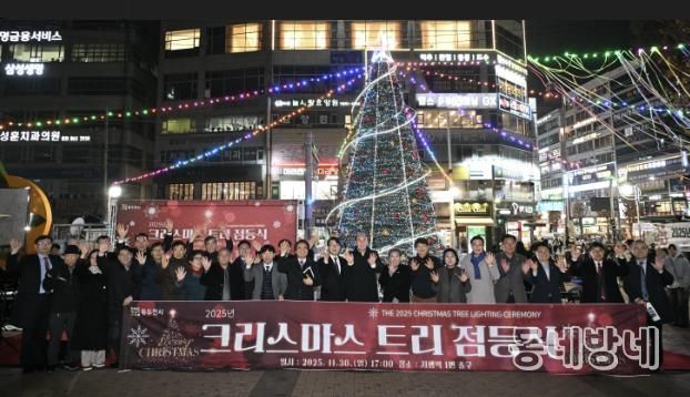 동네방네 김형규 기자 | 동두천기독교연합회는 지난 11월 30일 오후 5시, 지행역 1번 출구 앞 광장에서 '2025년 크리스마스 트리 점등식'을 개최했다.