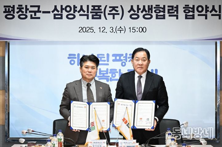 동네방네 김형규 기자 | 평창군과 삼양식품은 지방 소멸 위기에 대응하고 지속 가능한 지역 성장 기반을 마련하기 위해 ‘지방 살리기 상생 자매결연’ 업무협약을 체결했다.