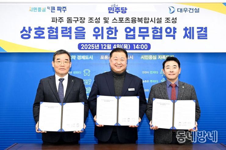 시는 지난 4일 박정 국회의원 및 대우건설과 함께 '파주 돔구장 및 스포츠 융복합시설 조성'과 관련한 상호협력 업무협약(MOU)을 체결했다.