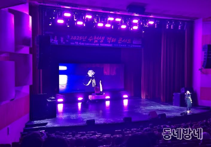 동네방네 김형규 기자 | 옥천군은 4일 옥천문화예술회관에서 지역 수험생들을 격려하기 위한‘전석 무료’수험생 콘서트를 개최했다. 이번 행사는 옥천군 주최·주관하고 한성희망이 후원했으며, 그동안 수능 준비로 지친 학생들이 잠시나마 스트레스를 해소하고 재충전할 수 있는 특별한 시간을 제공하고자 기획됐다.