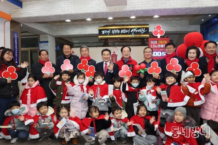 동네방네 김형규 기자 | 충북 진천군은 5일 진천군청 중앙현관에서 충북사회복지공동모금회와 함께 ‘희망2026나눔캠페인’ 사랑의 온도탑 제막식과 현장순회모금 행사를 개최했다.