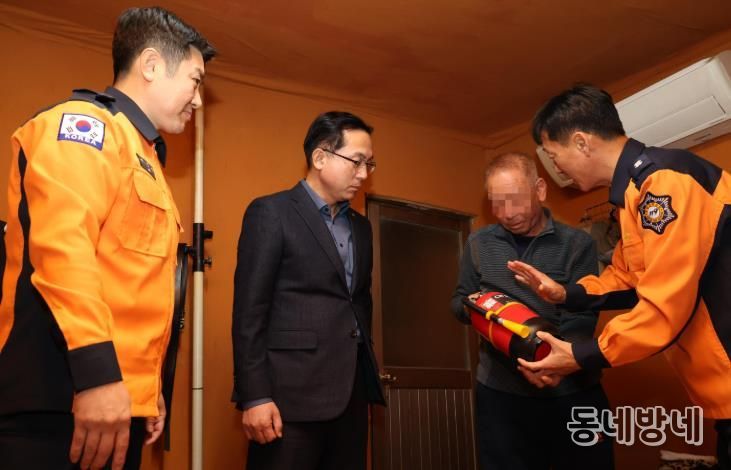 특히, 이날 박희조 동구청장과 이준서 동부소방서장은 독거노인 가구를 방문해 화재안전키트를 직접 설치하고, 전기화재 예방 및 대응 요령을 안내하며 주거환경의 안전 상태를 함께 점검했다.