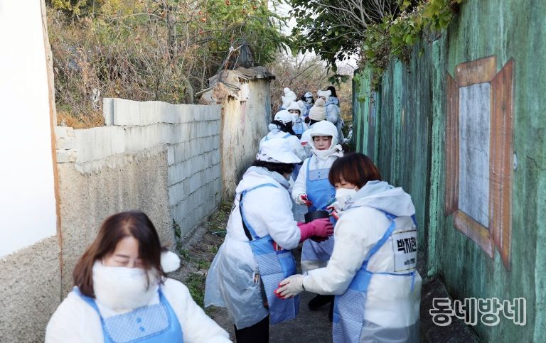 이날 '엔돌핀' 회원 40여 명은 추운 날씨 속에서도 연탄을 나르며 구슬땀을 흘렸고, 이웃들에게 따뜻한 응원의 메시지를 전했다.