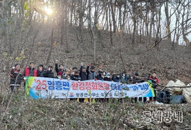 이번 정화활동은 영하 5도의 추운날씨에도 불구하고 외1리 마을주민 등 40여명이 참여하여 ‘깨끗한 영흥 만들기’구호 아래 청소가 취약한 산림속 쓰레기들을 수거하고 마을 환경정비에 구슬땀을 흘렸다.