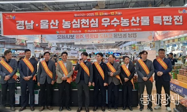 동네방네 김형규 기자 | 경상남도는 11월 27일부터 12월 7일까지 11일간 농협하나로유통 울산유통센터에서'경남․울산 우수농산물 특판전'을 추진했다고 밝혔다.