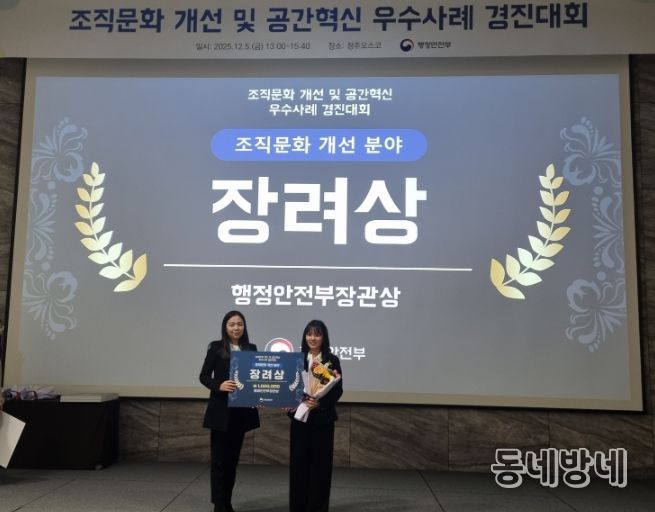 동네방네 김형규 기자 | 경상남도가 5일 청주 오송컨벤션센터(OSCO)에서 열린 행정안전부 주관 ‘2025년 조직문화 개선 우수사례 경진대회’에서 ‘장려상’을 수상했다.