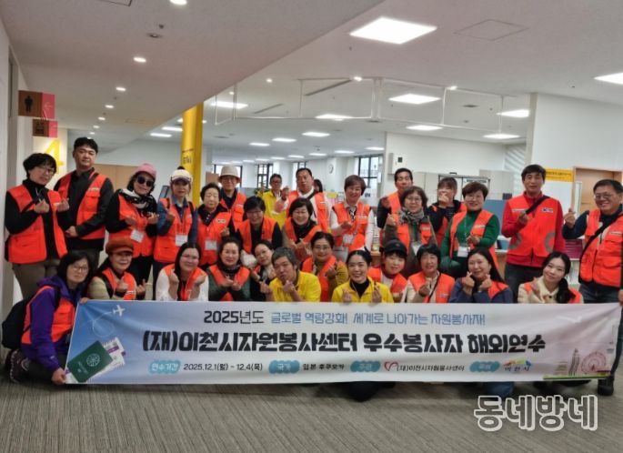 동네방네 김형규 기자 | 이천시 자원봉사센터는 지난 12월 1일부터 4일까지 3박 4일간 우수자원봉사자 24명을 대상으로 일본 후쿠오카에서 해외문화탐방 및 연수를 진행했다고 밝혔다.
