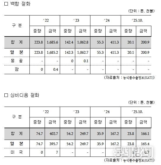 이번 협상 타결로 백합과 심비디움 절화는 배(1999년), 포도(2012년), 감귤(2022년)에 이어 뉴질랜드로 수출 가능한 품목이 됐다.
