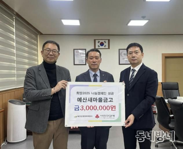 동네방네 김형규 기자 | 예산군 예산읍은 예산새마을금고가 예산읍 행정복지센터를 방문해 ‘희망2026 나눔캠페인’ 성금 300만원을 기탁했다고 8일 밝혔다.