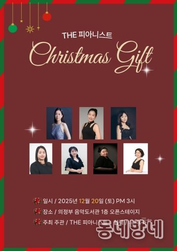 동네방네 김형규 기자 | 의정부음악도서관은 12월 20일 오후 3시, 1층 오픈스테이지에서 ‘The 피아니스트 크리스마스 선물’ 공연을 개최한다.