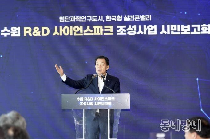 수원시는 8일 일월수목원 물빛누리홀에서 ‘수원 R&D사이언스 파크 조성사업’ 시민보고회를 열었다. 이재준 수원특례시장은 시민들에게 사업 추진 상황을 설명했다. 이날 보고회에는 지역 주민, 이재식 수원시의회 의장, 백혜련(수원시을) 의원, 수원시의회 의원, 성균관대 관계자 등이 참석했다.