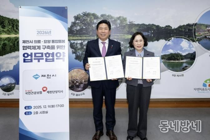 동네방네 김형규 기자 | 제천시는 지난 9일 국민건강보험공단 제천단양지사와 의료요양 통합돌봄사업 업무협약을 체결했다고 밝혔다.