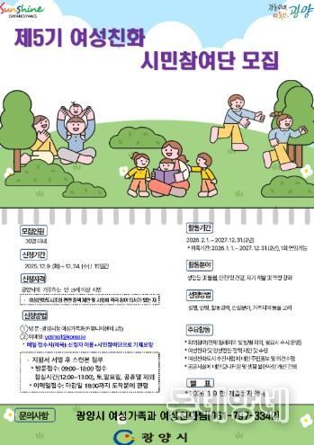 시 관계자는 “여성친화 시민참여단은 시민의 경험과 시각이 정책으로 이어지는 중요한 통로”라며 “광양시는 그동안 시민참여단 운영을 통해 생활밀착형 정책 제안과 현장 중심 모니터링을 지속해 왔다. 일상에서 느낀 불편과 아이디어를 정책에 반영하고자 하는 시민들의 적극적인 참여를 기대한다”고 말했다.