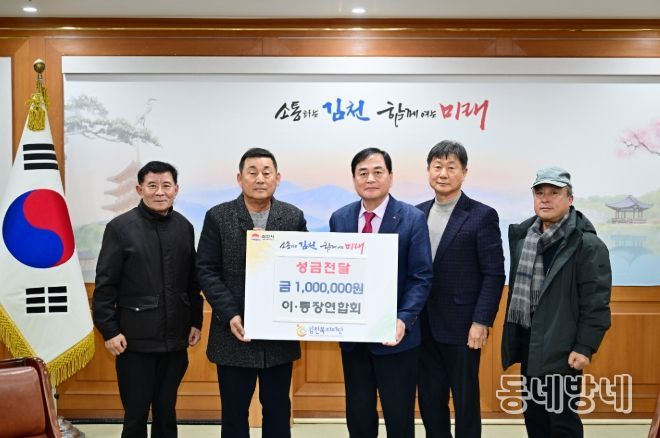 동네방네 김형규 기자 | 김천시 이·통장연합회(회장 박희중)는 11일 김천복지재단에 이웃돕기 성금 100만 원을 기탁했다.