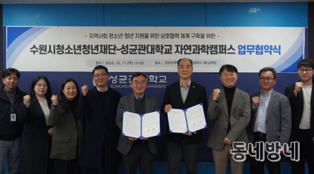 동네방네 김형규 기자 | 수원시청소년청년재단은 11일 성균관대학교 자연과학캠퍼스와 청소년ㆍ청년의 취‧창업 지원과 전인적 성장을 위한 업무협약(MOU)을 체결했다고 밝혔다.