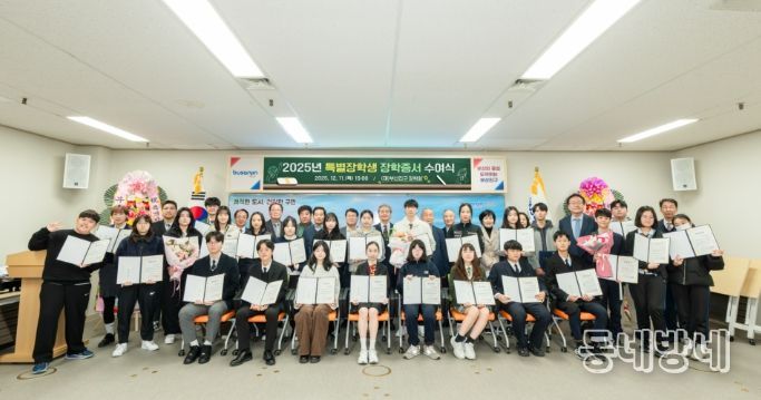 동네방네 김형규 기자 | (재)부산진구장학회에서는 12월 11일 부산진구청 회의실에서 ‘2025년도 특별장학생’에 대한 장학증서 수여식을 가졌다고 밝혔다.