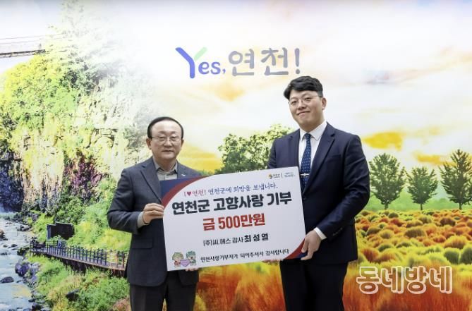 동네방네 김형규 기자 | 연천군은 지난 12일 군청에서 고향사랑기부금 기탁식을 열고 ㈜씨.에스 최성열 감사로부터 기부금 500만 원을 기탁받았다고 밝혔다.