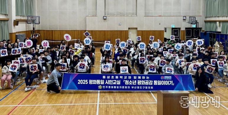 동네방네 김형규 기자 | 민주평화통일자문회의 부산영도구협의회(회장 김창석)는 지난 12월 11일 동삼초등학교 강당에서 5·6학년 초등학생 150여 명을 대상으로 ‘2025 평화통일 시민교실 : 청소년 평화공감 통일이야기’를 개최했다.