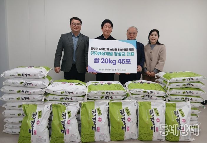 동네방네 김형규 기자 | 울주군시설관리공단(이사장 최인식) 중부장애인복지관은 12월 16일, ㈜정성개발(대표 정성교)로부터 백미 20kg 45포를 후원받아 전달식을 진행했다.