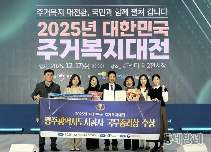 동네방네 김형규 기자 | 광주도시공사(사장 김승남)는 17일 서울 양재 aT센터에서 열린 ‘2025 대한민국 주거복지대전’에서 주거복지 향상 및 서민 주거안정에 기여한 공로를 인정받아 국무총리 표창을 수상했다고 밝혔다.